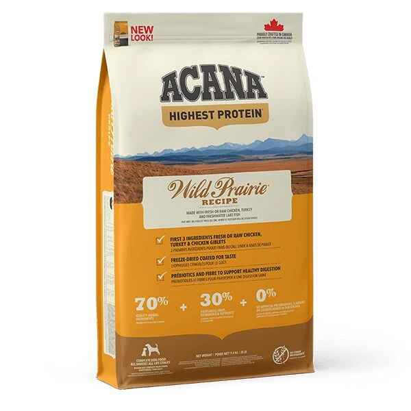 This Acana Regionals Wild Prairie Dry Dog Food Multibuy is a great option for stocking up on great tasting dog food that is healthy and satisfying. Made up of 60% chicken, turkey, whole eggs and walleye, this delicious mixture is high in protein and is free from grain. This means that it is easily digestible and will be gentle on sensitive tummies for those who may have food allergies.