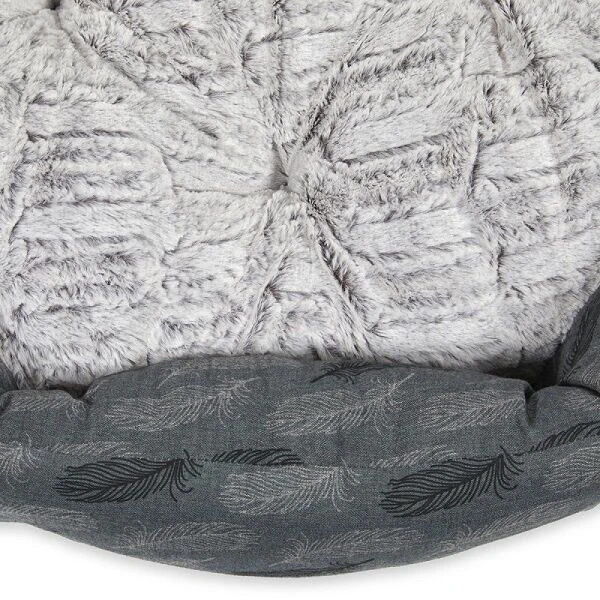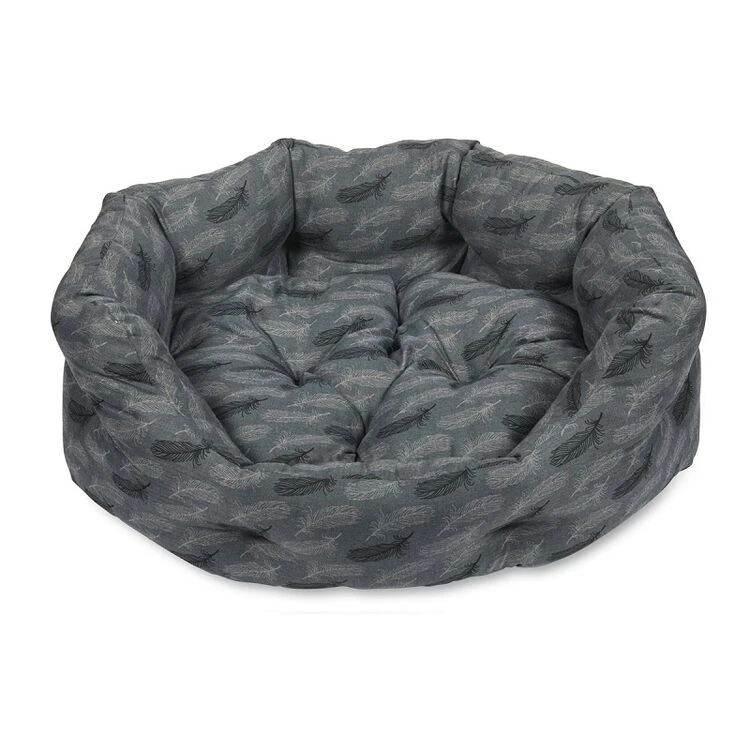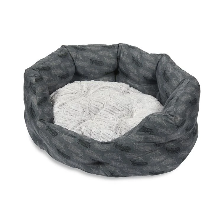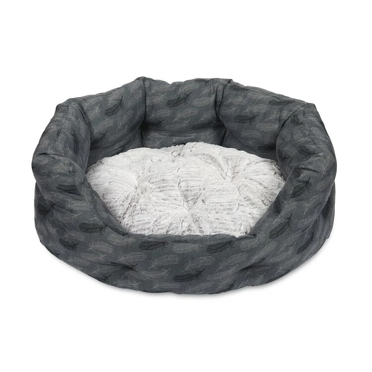 Petface Feather oval dog bed with reversible cushion and anti slip base. It is machine washable at 30 degrees. Helping to let your pet relax and sleep comfortably by keeping them warm and giving a feeling of security.Â