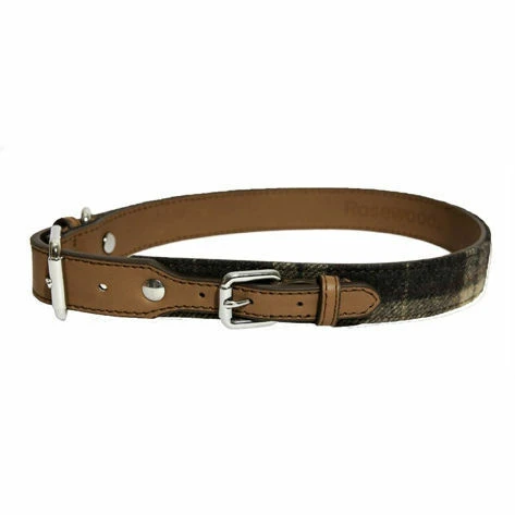 Rosewood Luxury Leather Collar Tweed Check 3/4″